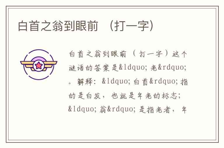 白首之翁到眼前 (打一字)