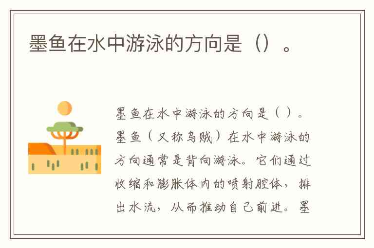 如果问题是选择题,它的答案一般是向后游泳,因为墨鱼通常是利用喷射水流来向后推进的。