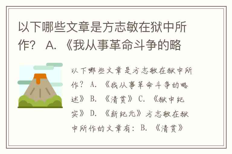 以下哪些文章是方志敏在狱中所作? A. 《我从事革命斗争的略述》 B. 《清贫》 C. 《狱中纪实》 D. 《新纪元》