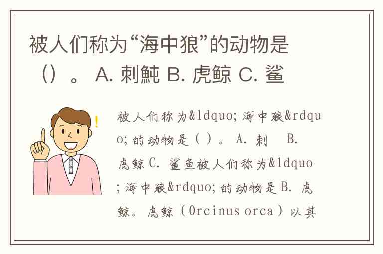 被人们称为“海中狼”的动物是()。 A. 刺魨 B. 虎鲸 C. 鲨鱼