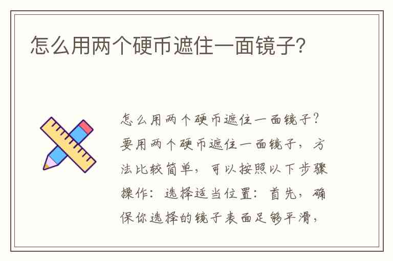 要用两个硬币遮住一面镜子,方法比较简单,可以按照以下步骤操作: