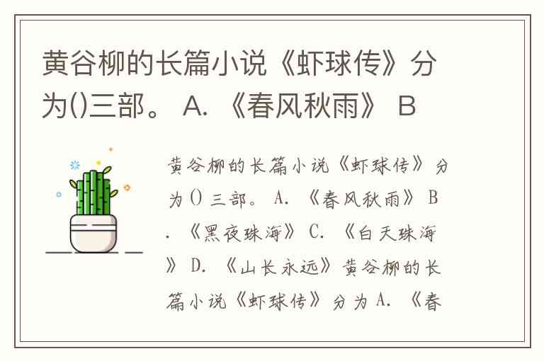 黄谷柳的长篇小说《虾球传》分为 A. 《春风秋雨》、B. 《黑夜珠海》 和 D. 《山长永远》。
