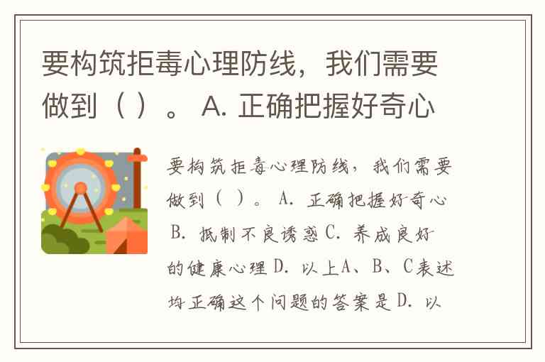 要构筑拒毒心理防线,我们需要做到( )。 A. 正确把握好奇心 B. 抵制不良诱惑 C. 养成良好的健康心理 D. 以上A、B、C表述均正确