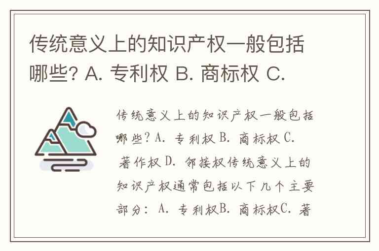 传统意义上的知识产权一般包括哪些? A. 专利权 B. 商标权 C. 著作权 D. 邻接权