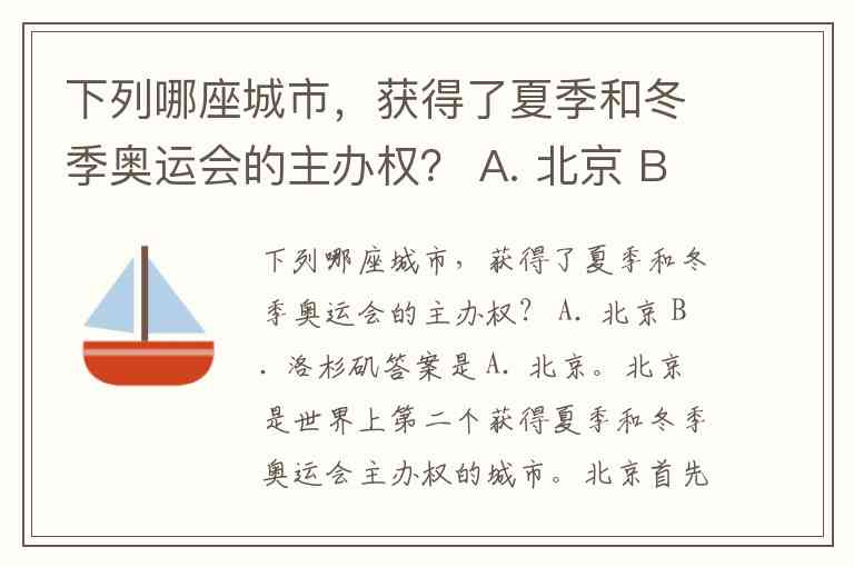下列哪座城市,获得了夏季和冬季奥运会的主办权? A. 北京 B. 洛杉矶