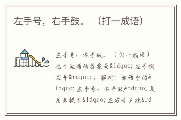 解析:谜语中的“左手号,右手鼓”是用来提示“左右手互换”的意思。成语“左手倒右手”形容两手互相交换,常常用来表示反向操作或非常熟练地完成两件事情,类似于手忙脚乱地做两件事。