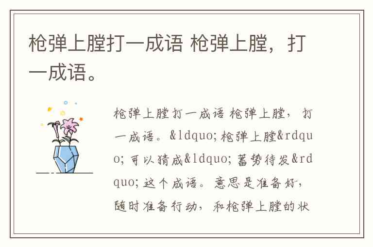 枪弹上膛打一成语 枪弹上膛,打一成语。