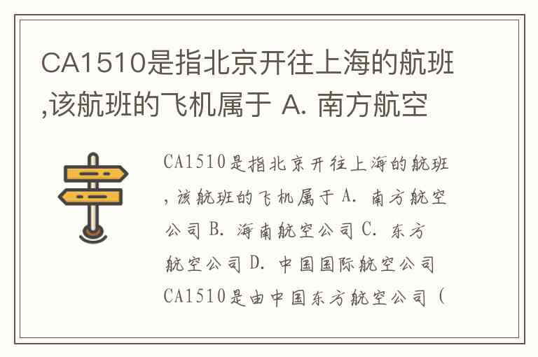 CA1510是指北京开往上海的航班,该航班的飞机属于 A. 南方航空公司 B. 海南航空公司 C. 东方航空公司 D. 中国国际航空公司