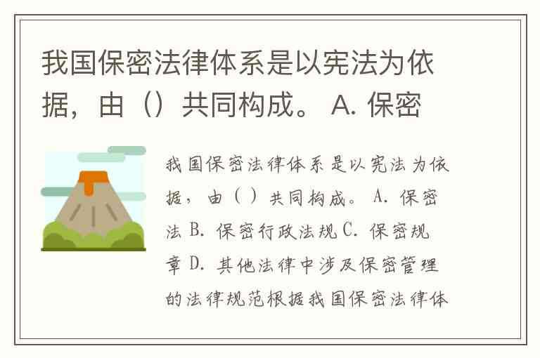 如果你是在准备考试或者需要详细了解相关内容,可以深入研究《中华人民共和国保守国家秘密法》及其配套法规、条例等。