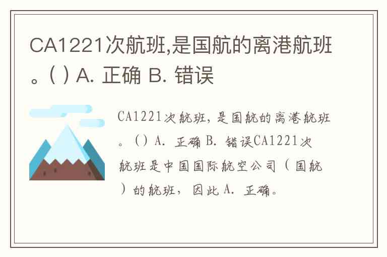 CA1221次航班,是国航的离港航班。( ) A. 正确 B. 错误