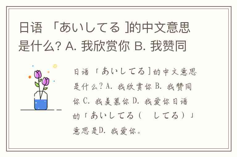 日语 「あいしてる ]的中文意思是什么? A. 我欣赏你 B. 我赞同你 C. 我羡慕你 D. 我爱你