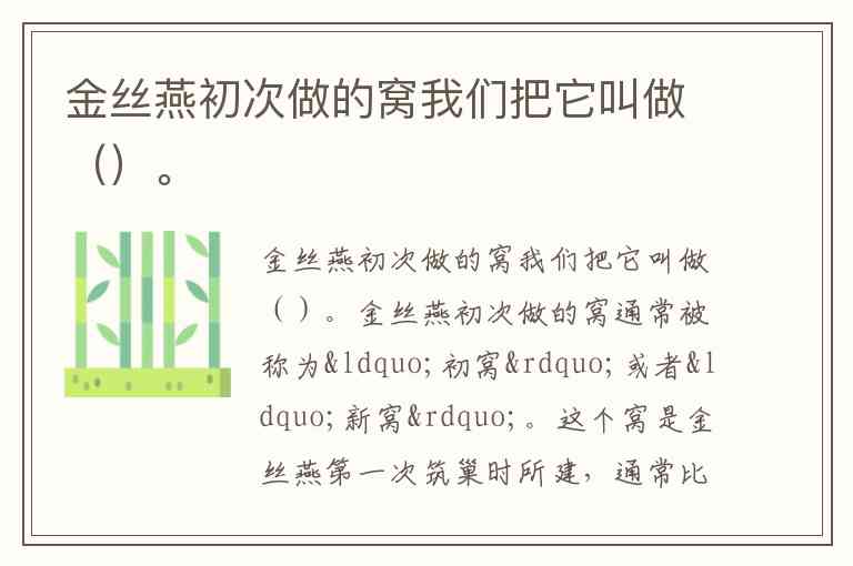 金丝燕初次做的窝我们把它叫做()。