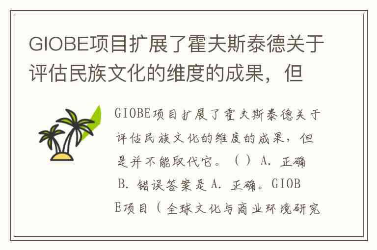 GIOBE项目(全球文化与商业环境研究)扩展了霍夫斯泰德关于评估民族文化的维度的成果,但并没有完全取代霍夫斯泰德的理论。GIOBE项目的研究提供了更多关于文化差异的维度和视角,补充了霍夫斯泰德的工作,而不是完全替代它。