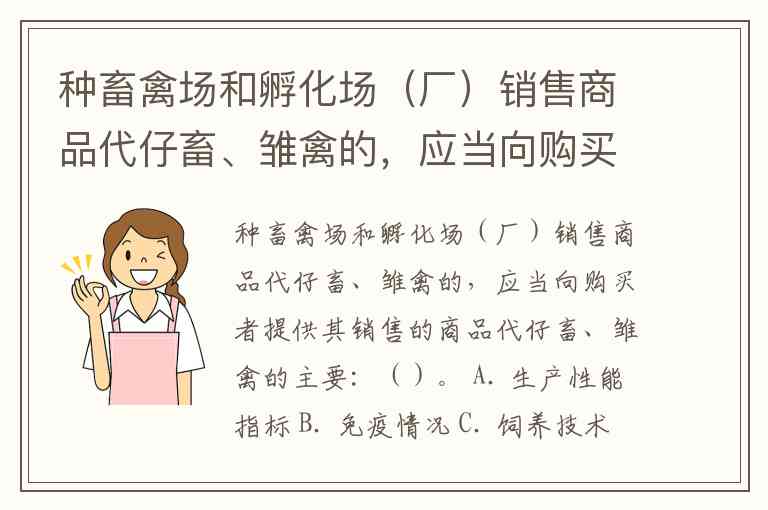 种畜禽场和孵化场(厂)销售商品代仔畜、雏禽的,应当向购买者提供其销售的商品代仔畜、雏禽的主要:()。 A. 生产性能指标 B. 免疫情况 C. 饲养技术和有关咨询服务 D. 有效期内的检疫合格证明 E. 有效期内的免疫证明
