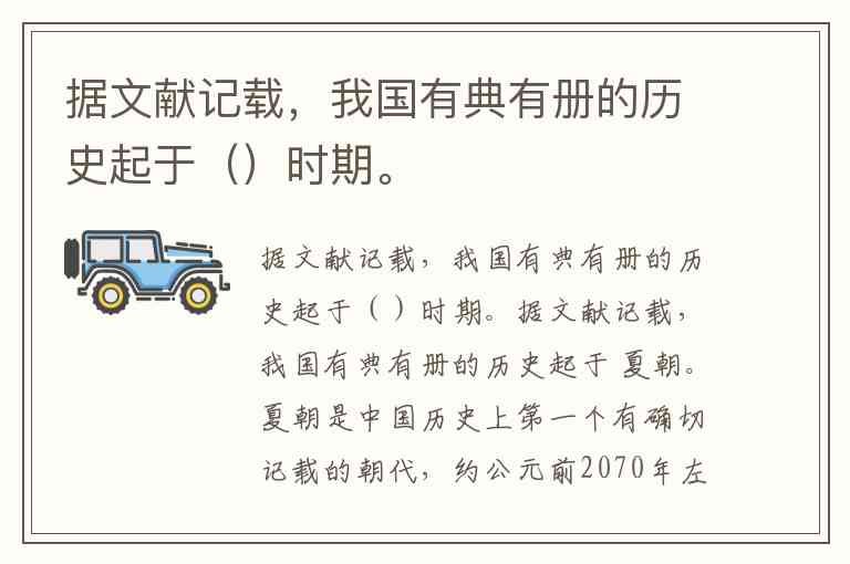 据文献记载,我国有典有册的历史起于 夏朝。夏朝是中国历史上第一个有确切记载的朝代,约公元前2070年左右建立。夏朝的存在标志着中国进入了有文字记载的历史时期,尽管早期的文献记载较少,但根据后来的史书记载,夏朝的历史已经能够通过一些文献、传说和考古发现得到印证。