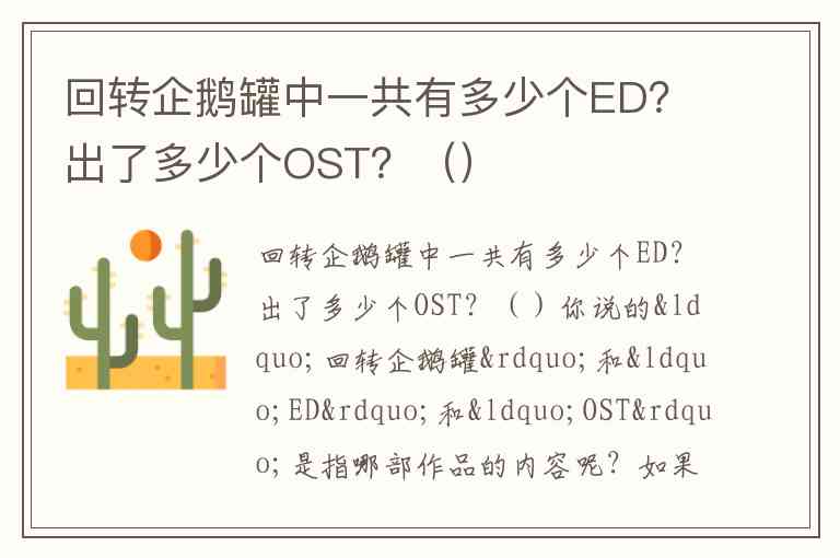 你说的“回转企鹅罐”和“ED”和“OST”是指哪部作品的内容呢?如果是某个动漫或游戏的相关话题,我可以帮你查找一下。给我一点具体信息吧!