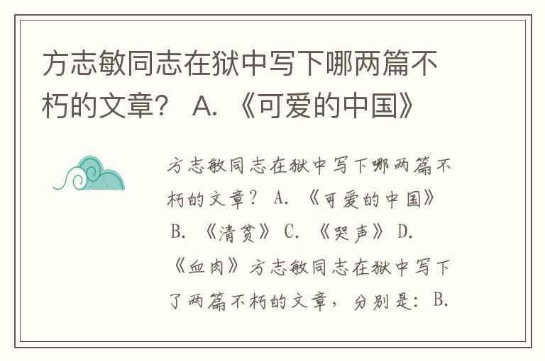 方志敏同志在狱中写下哪两篇不朽的文章? A. 《可爱的中国》 B. 《清贫》 C. 《哭声》 D. 《血肉》