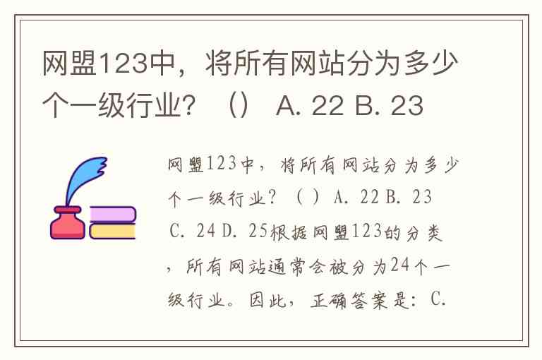 网盟123中,将所有网站分为多少个一级行业?() A. 22 B. 23 C. 24 D. 25