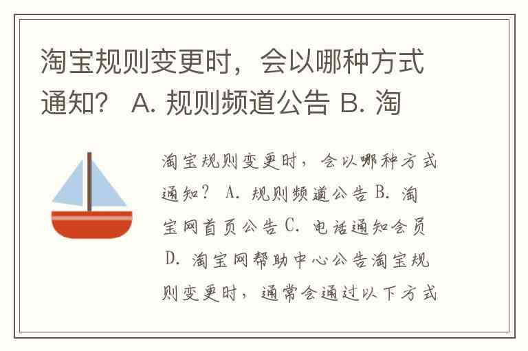 淘宝规则变更时,会以哪种方式通知? A. 规则频道公告 B. 淘宝网首页公告 C. 电话通知会员 D. 淘宝网帮助中心公告
