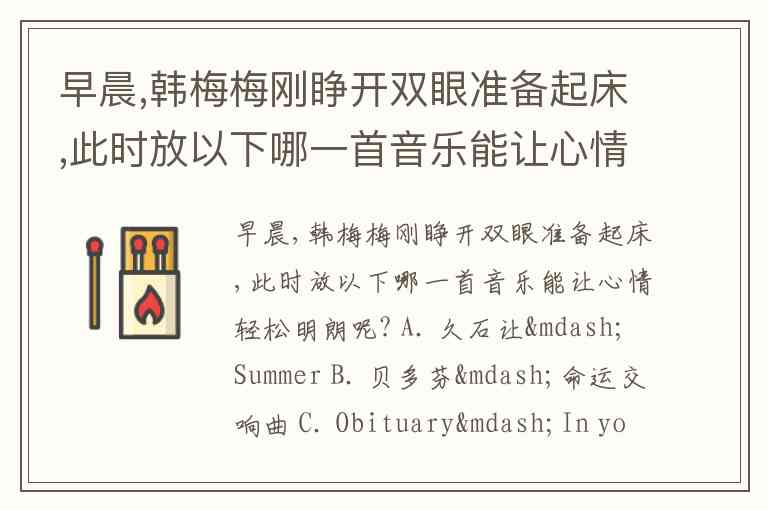 早晨,韩梅梅刚睁开双眼准备起床,此时放以下哪一首音乐能让心情轻松明朗呢? A. 久石让—Summer B. 贝多芬—命运交响曲 C. Obituary—In your head D. 巴托丽—风雨飘摇