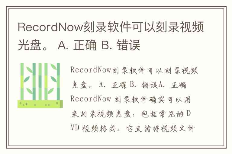 RecordNow刻录软件可以刻录视频光盘。 A. 正确 B. 错误
