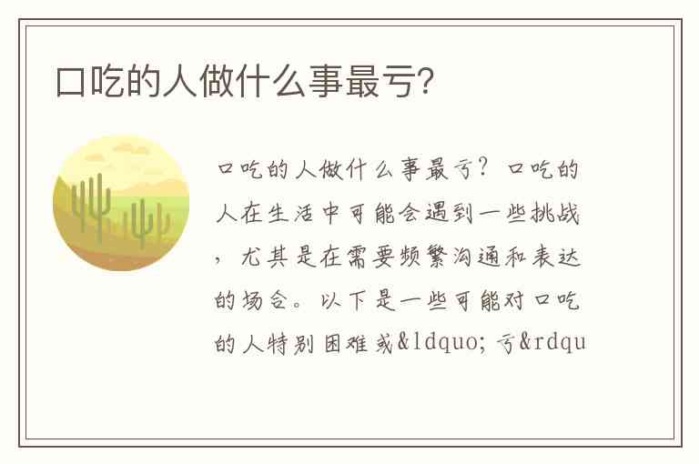 口吃的人在生活中可能会遇到一些挑战,尤其是在需要频繁沟通和表达的场合。以下是一些可能对口吃的人特别困难或“亏”的情境: