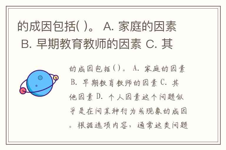 的成因包括( )。 A. 家庭的因素 B. 早期教育教师的因素 C. 其他因素 D. 个人因素