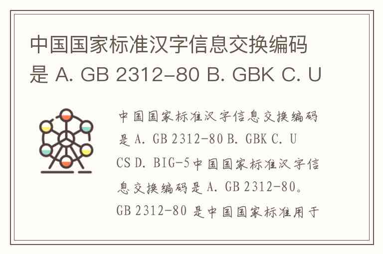 中国国家标准汉字信息交换编码是 A. GB 2312-80 B. GBK C. UCS D. BIG-5