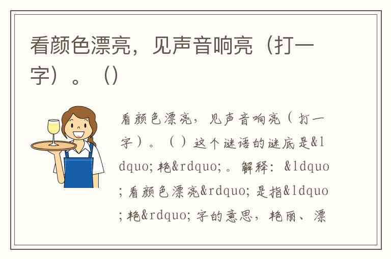 看颜色漂亮,见声音响亮(打一字)。()