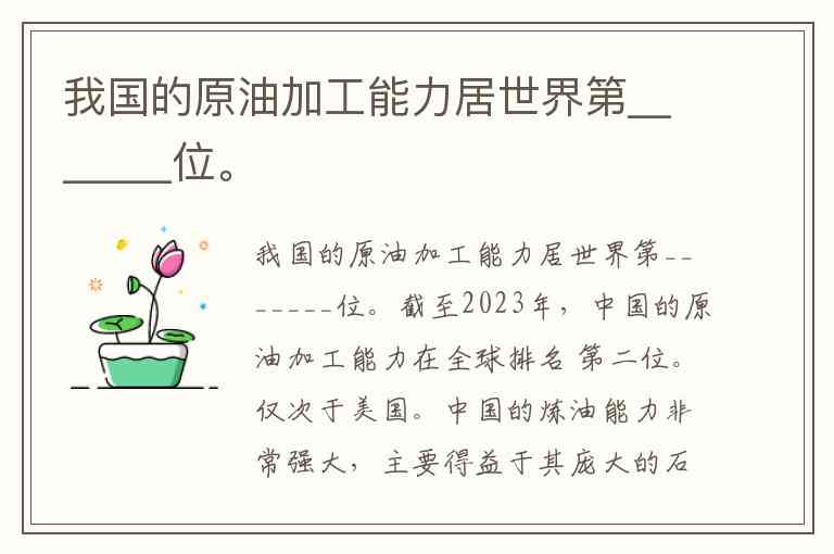 。仅次于美国。中国的炼油能力非常强大,主要得益于其庞大的石油需求和多个大型炼油企业的建设与运营。