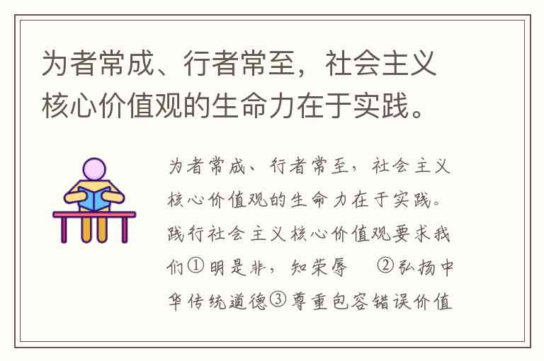①明是非,知荣辱:践行社会主义核心价值观的一个基本要求是分辨是非、知道什么是荣辱,倡导正义、维护社会公德。
