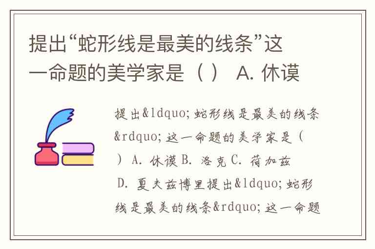 提出“蛇形线是最美的线条”这一命题的美学家是( ) A. 休谟 B. 洛克 C. 荷加兹 D. 夏夫兹博里