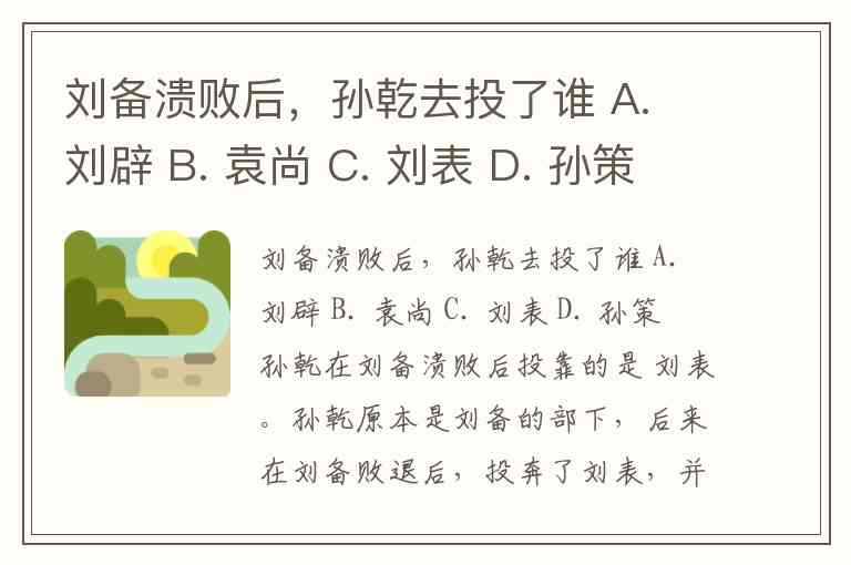 刘备溃败后,孙乾去投了谁 A. 刘辟 B. 袁尚 C. 刘表 D. 孙策