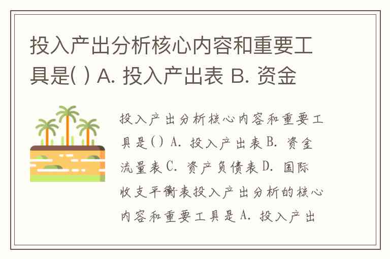 投入产出分析核心内容和重要工具是( ) A. 投入产出表 B. 资金流量表 C. 资产负债表 D. 国际收支平衡表