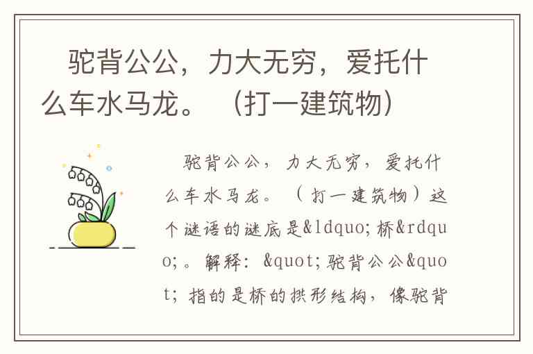 驼背公公,力大无穷,爱托什么车水马龙。 (打一建筑物)