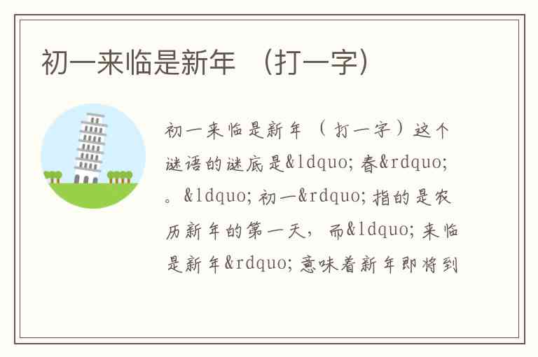 “初一”指的是农历新年的第一天,而“来临是新年”意味着新年即将到来,代表着春天的开始。春天是农历新年的象征,因此谜底是“春”字。