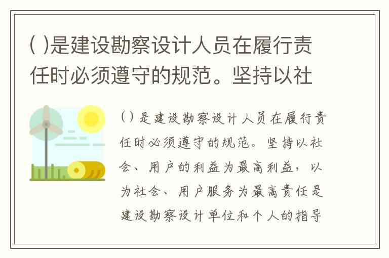 ( )是建设勘察设计人员在履行责任时必须遵守的规范。坚持以社会、用户的利益为最高利益,以为社会、用户服务为最高责任是建设勘察设计单位和个人的指导方针。 A. 法律法规 B. 职业规范 C. 职业道德 D. 职业纪律