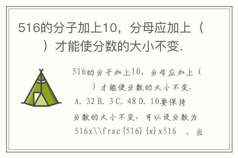 516的分子加上10,分母应加上( )才能使分数的大小不变. A. 32 B. 3 C. 48 D. 10