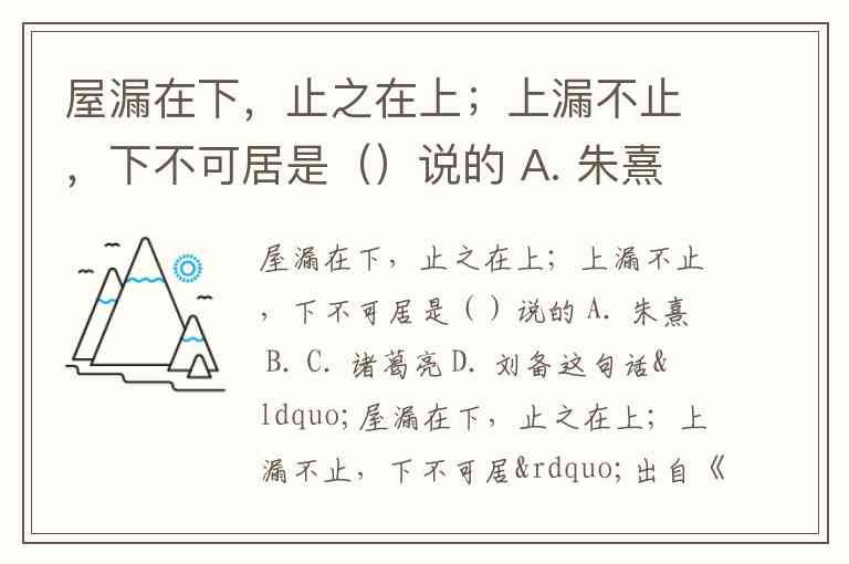 屋漏在下,止之在上;上漏不止,下不可居是()说的 A. 朱熹 B. C. 诸葛亮 D. 刘备