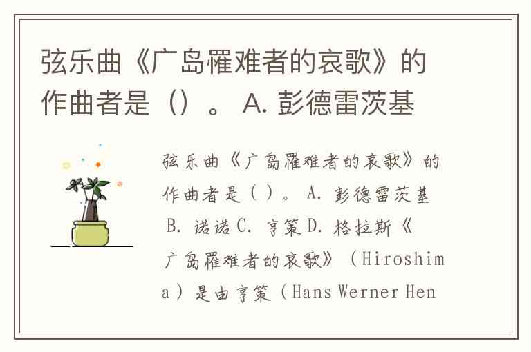 弦乐曲《广岛罹难者的哀歌》的作曲者是()。 A. 彭德雷茨基 B. 诺诺 C. 亨策 D. 格拉斯