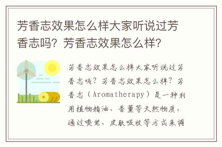 芳香志效果怎么样大家听说过芳香志吗?芳香志效果怎么样?