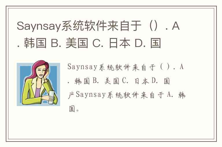 Saynsay系统软件来自于(). A. 韩国 B. 美国 C. 日本 D. 国产