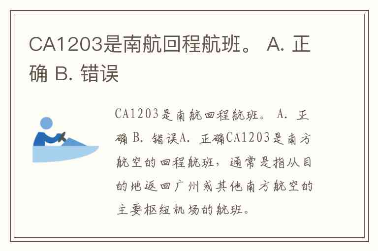 CA1203是南航回程航班。 A. 正确 B. 错误