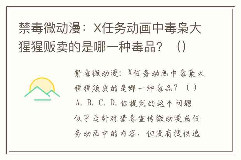 你提到的这个问题似乎是针对禁毒宣传微动漫或任务动画中的内容,但没有提供选项的具体内容(A、B、C、D)。如果能提供选项,我能更好地帮助你回答这个问题。