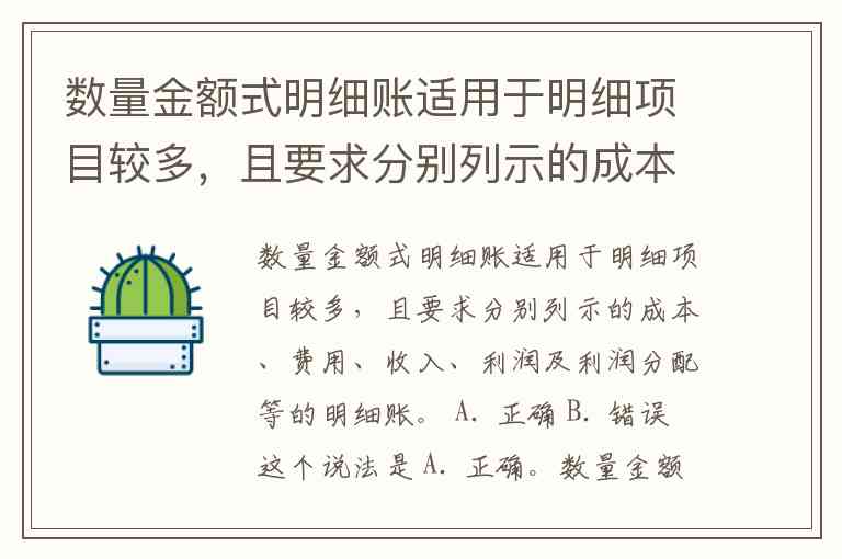 数量金额式明细账适用于明细项目较多,且要求分别列示的成本、费用、收入、利润及利润分配等的明细账。 A. 正确 B. 错误