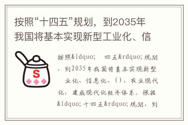根据“十四五”规划,到2035年我国将基本实现新型工业化、信息化、城镇化、农业现代化,建成现代化经济体系。