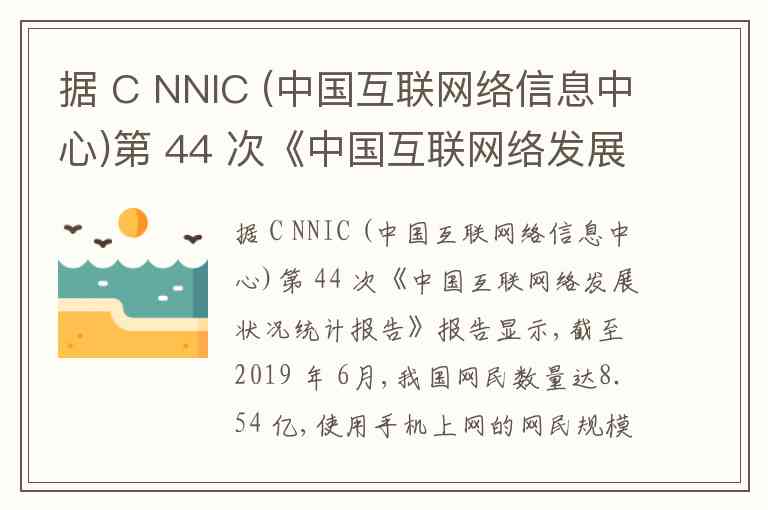 据 C NNIC (中国互联网络信息中心)第 44 次《中国互联网络发展状况统计报告》报告显示,截至 2019 年 6月,我国网民数量达8.54 亿,使用手机上网的网民规模达( )亿。 A. 8.47 B. 7.91 C. 6.49 D. 5.32