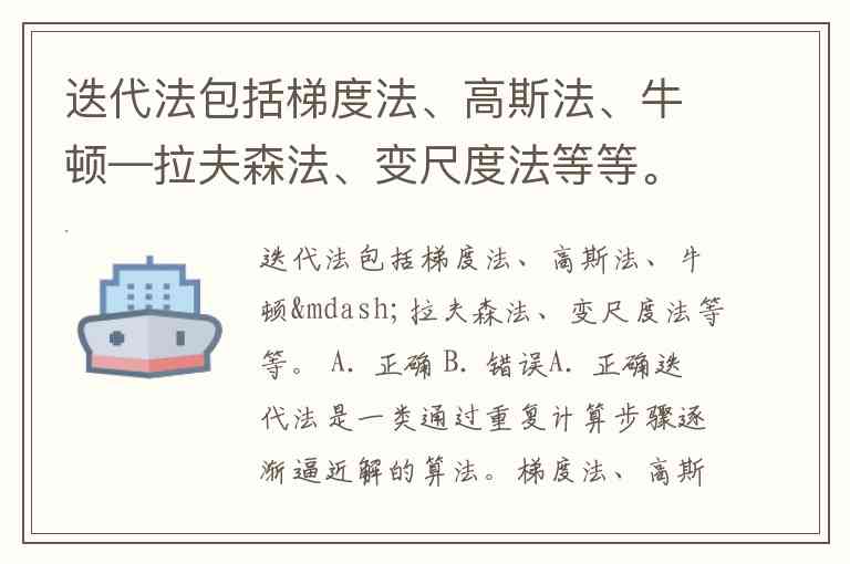 迭代法包括梯度法、高斯法、牛顿—拉夫森法、变尺度法等等。 A. 正确 B. 错误