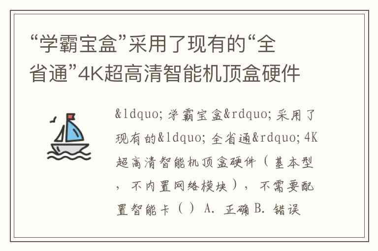 “学霸宝盒”采用了现有的“全省通”4K超高清智能机顶盒硬件(基本型,不内置网络模块),不需要配置智能卡() A. 正确 B. 错误