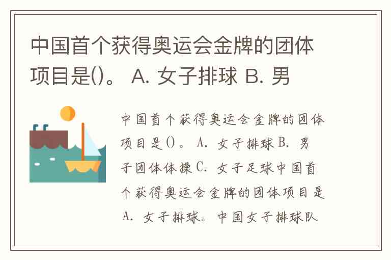 中国首个获得奥运会金牌的团体项目是()。 A. 女子排球 B. 男子团体体操 C. 女子足球